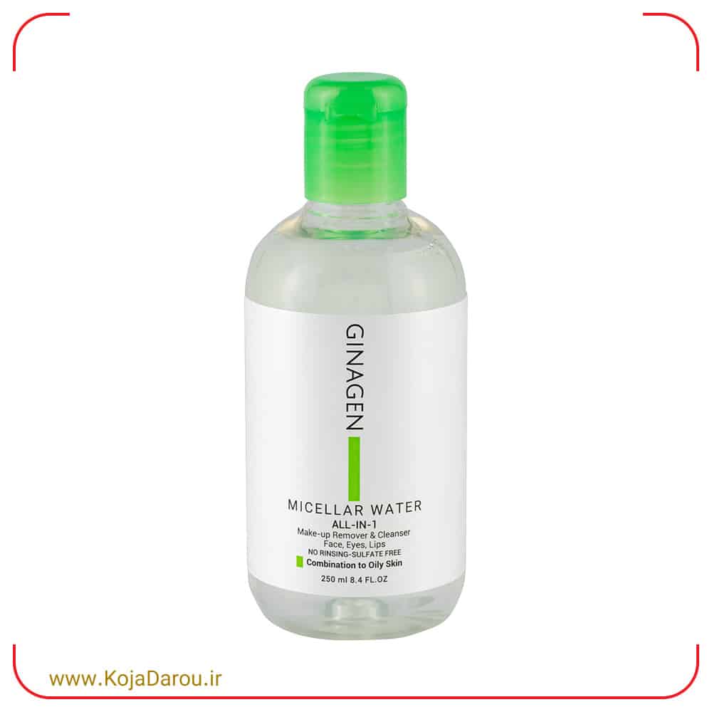 محلول پاک کننده آرایش ژیناژن مناسب پوست چرب Ginagen حجم ۲۵۰ میلی لیتر